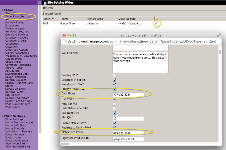 We’ve added a few extra phone number fields for the Cart, Event/Wedding Site and Mobile Site. If you enter a number for Mobile or Cart then it will use that number instead of your local or toll free numbers by default. If an affiliate or campaign is passed and they have a phone number they will still override these numbers in the same way it overrides your local / toll free number. However if a number is setup for the Wedding Site then that is the number that will appear there regardless of any affiliate or campaigns the user might have come from. You can set the Cart / Mobile phone numbers in Wide Store Settings and Event/Wedding site phone under Weddings – Settings.